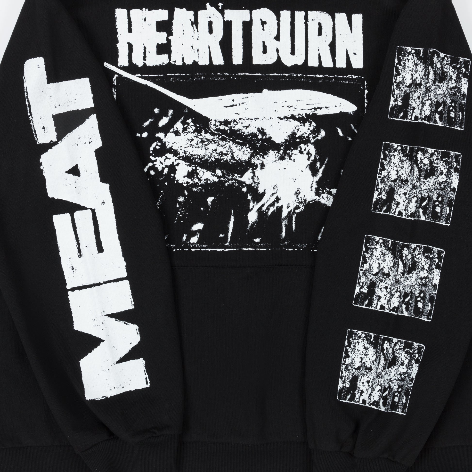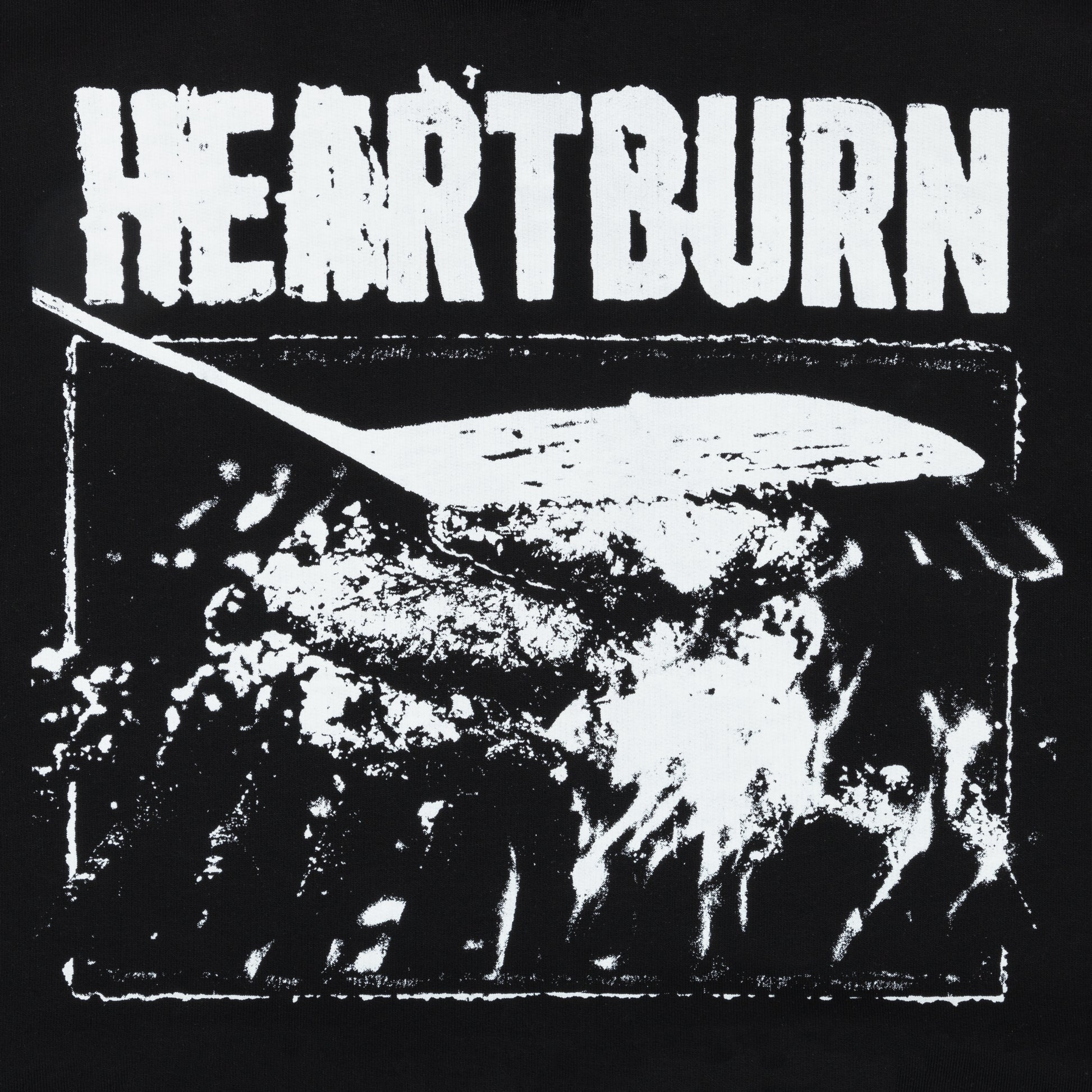 This soft fleece Heartburn Hoodie keeps you warm while serving up a deliciously disturbing “Heartburn” graphic that’s charred right across the front.
